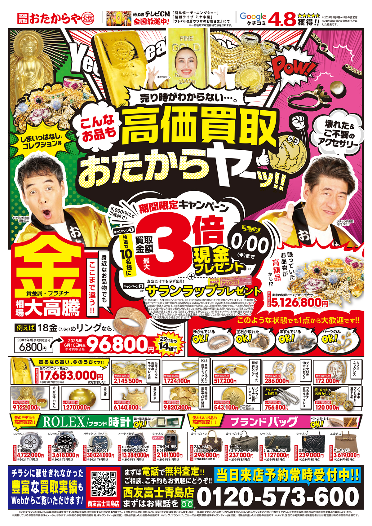 金は今が売り時!金やプラチナのアクセサリー、金歯までその場で現金化いたします。